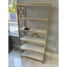 Embrace the modern sophistication and geometric appeal of this contemporary bookcase. Delivering a familiar five-shelf silhouette, the bookcase is designed with an open back for excellent versatility in any room. Its shelves are accentuated with geometric openwork panels featuring hexagons that create an enchanting design. Features include: 360° finished frame, five shelves with white finish paper laminate, steel frame with pads to protect flooring, gold finish, made of steel and particle board with paper laminate, anti-tip kit included, assembly required. Country of origin: Taiwan.