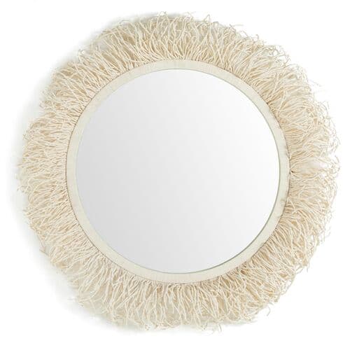 The Giselle Mirror is an exquisite representation of artisan craftsmanship, offering a unique and textured aesthetic to elevate any space. The frame is adorned with small, elongated wooden beads, meticulously hand-beaded and carefully placed onto intricately formed wires. This design creates a stunning loose-strand effect that radiates outward, resembling a soft, organic sunburst. The Giselle Mirror's elegant yet natural design makes it a versatile addition to various interior styles, from bohemian to coastal or transitional. This hand-formed piece is not just a functional mirror but also a work of art that celebrates the beauty of handcrafted details. Whether placed in an entryway, living room, or bedroom, the Giselle Mirror serves as a captivating focal point, combining natural materials with timeless design to enhance any space.