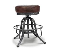 Whether needed at a counter or at a bar, this vintage-style industrial stool delivers with its 18.5-to-31-inch adjustable height range (dining to bar height). The inviting seat is made of plush, hand-distressed leather and sits atop a handcrafted steel base. Dimensions (inches): 21W x 16D x 18.5-31H. Seat 13" in diameter.