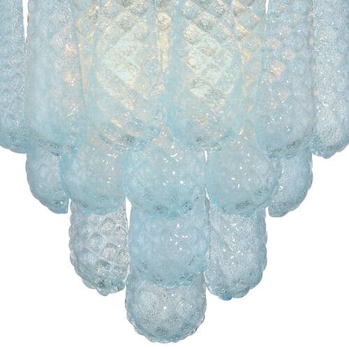 Inspired by vintage and mid-century design, the Ollie collection features hand-blown glass with intricate raised details. The beautiful hues of this collection shift subtly depending on whether the light is on or off, creating a dynamic and artistic effect. This unique piece blends mid-20th-century charm with a modern touch, making it a true statement fixture.