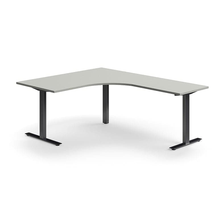 Eckschreibtisch QBUS, 1600x2000 mm, T-Gestell, schwarz/hellgrau