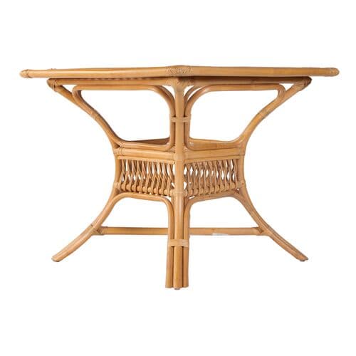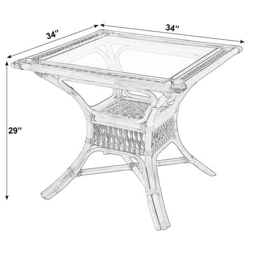 Evric 34.25" Square Rattan Glass Top Dining Table - Natural | Dinner Table, Family Table - Brown