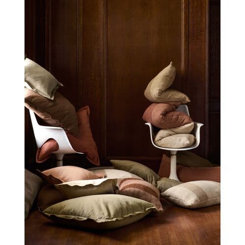 Captain is a soft blush throw pillow from Leanne Ford x Loloi with flange edges for layered home decor. The pillow cover is machine-woven of cotton in India and measures 26 x 26, a versatile size for living rooms and bedrooms.