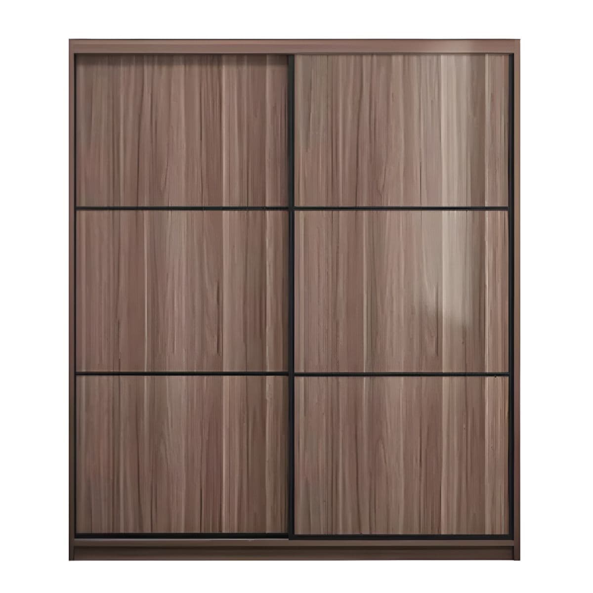 Modern Brown Wood Wardrobe Armoire with Sliding Doors and Mirror - Armoire 180 x 60 x 200 cm