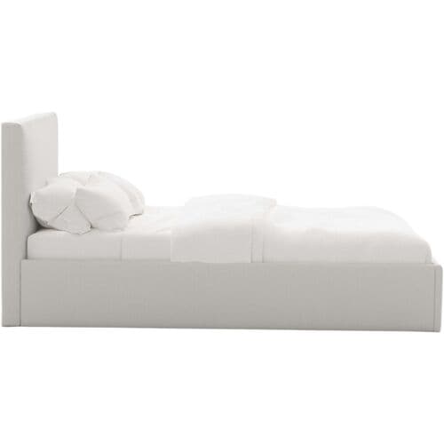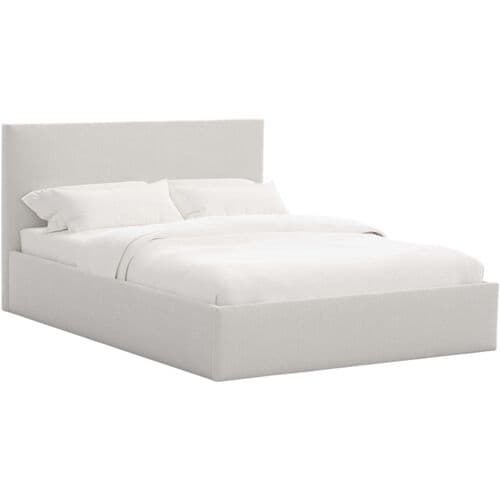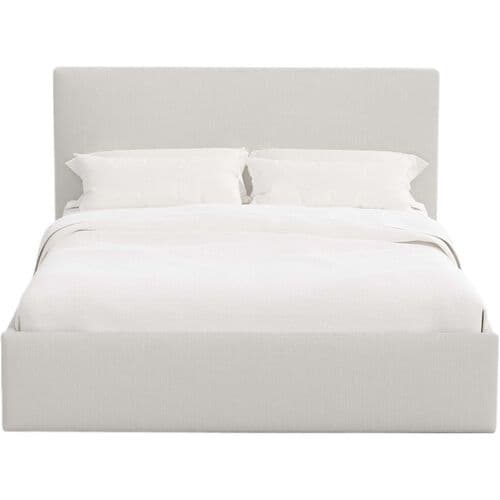 Solaro Square Low Platform Bed - Performance Velvet - Handcrafted - White, Upholstered, Comfortable & Durable | Bed Frame, Flatbed, Slatted Bed