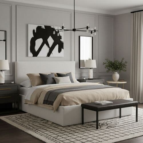 The Solaro Low Square Platform Bed stands with quiet confidence. Defined by its low, square platform and architectural lines, it balances modern strength with inviting warmth. Like the sun it’s named for, Solaro radiates an enduring presence — bold yet welcoming, contemporary yet timeless. Upholstered in rich velvet and proudly handcrafted in the USA, it offers a foundation of true comfort, designed for those who rest with purpose.