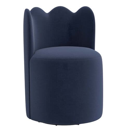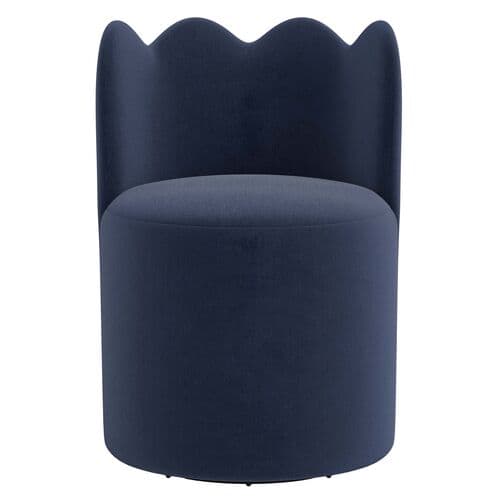 The Mirabelle Scallop Velvet Swivel Dining Chair blends sculptural beauty with everyday comfort. Its gently scalloped backrest evokes the soft curves of a seashell, bringing a touch of romance to the dining room. Upholstered in sumptuous velvet and generously cushioned, Mirabelle invites lingering conversation and effortless ease. With its smooth swivel base, it offers fluid movement while maintaining a refined silhouette. Handcrafted in the USA, this chair is a study in artistry, comfort, and enduring quality — a piece designed to move with you and stay with you.