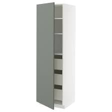 METOD / MAXIMERA Hochschrank m Schubladen, weiß/Nickebo matt graugrün, 60x60x200 cm