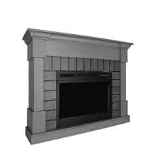 36 in. Gray Freestanding Faux Stone Infrared Electric Fireplace with Mantel