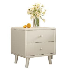 Solid Wood White Rounded Corners Nightstands with Two Drawers - White