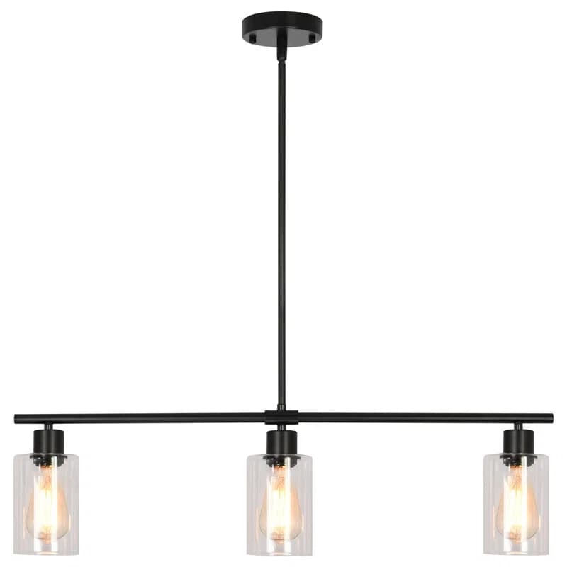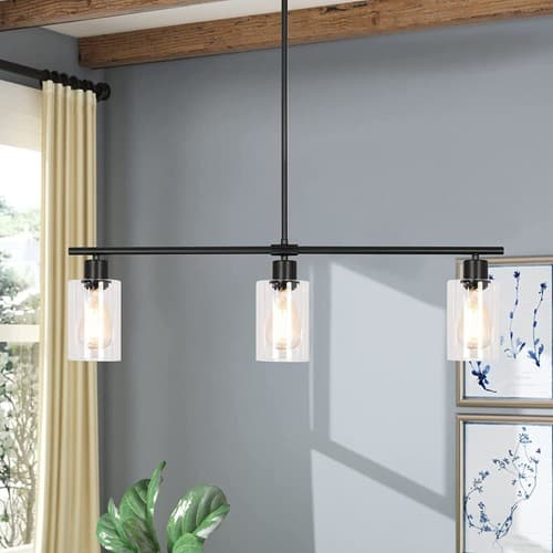 New farmhouse chandelier ceiling fixture with 3 clear glass shades. Hardwired, height-adjustable, LED lighting, black finish. Condition: New. Brand: WBinDX. Room: Living Room, Bedroom, Dining Room, Hallway, Home Office, Kitchen, Bar. Number of lights: 3. Power source: Hardwired. Voltage: 110 V. UL certified. Assembly required. Manufacturer warranty: 1 Year. UPC: Does not apply. Item diameter: 31.22 in.