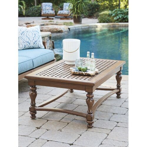 Harbor Isle Outdoor Aluminum Rectangular Basket Weave Cocktail Table - Walnut - Tommy Bahama - Brown