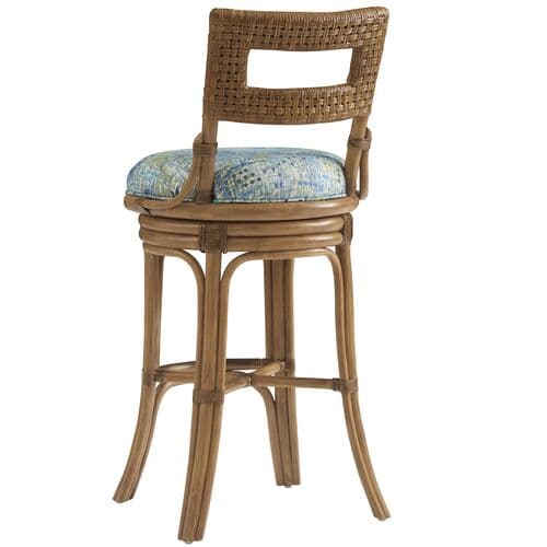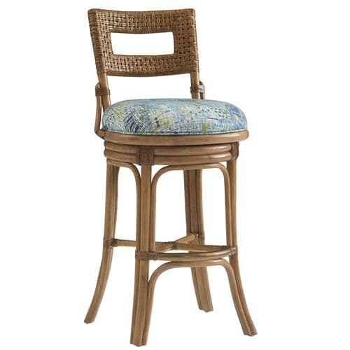 Bay Harbour Rattan Bar Stool - Small Pattern Green/Blue - Tommy Bahama