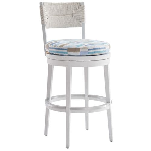Ocean Breeze Promenade Outdoor Aluminum/Wicker Swivel Bar Stool - White/Stripe Multicolor - Tommy Bahama