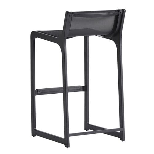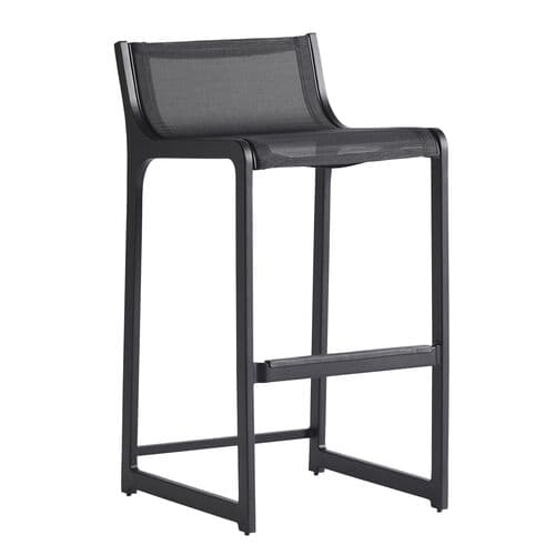 The South Beach Bar Stool embodies the high energy and cutting-edge style reminiscent of Miami's South Beach. This bar stool makes a dramatic contemporary design statement with its strong architectural lines crafted in dark graphite aluminum. The seating features a premium all-weather sling material that coordinates beautifully with the base. The seat angle and short back are designed for ideal comfort, complemented by a front kick bar for resting your feet. The sleek and linear design is highlighted by an eye-catching play on angles, making it a standout piece in any outdoor setting.