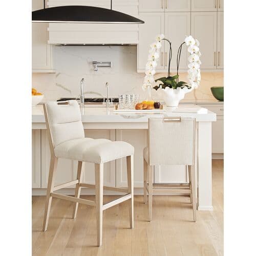 The Greer Channeled Upholstered Counter Stool embodies a modern interpretation of relaxed resort living, combining style, comfort, and craftsmanship. With its clean architectural lines and channeled upholstery, it offers both visual sophistication and exceptional comfort. Thoughtfully designed with refined detailing and subtle functional elements, the Greer brings an elevated sense of casual elegance to any kitchen or entertaining space—versatile, timeless, and impeccably crafted.