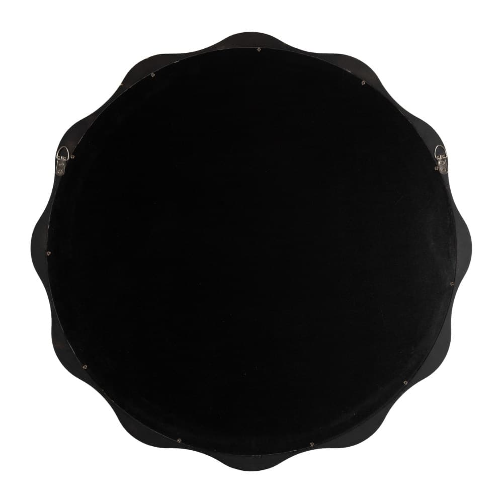 Overview: Round scalloped mirror shape with a thick, durable wood-composite frame in a satin gold finish. Easy to hang; wall-mounted mirror. (See product specifications for more details.)
