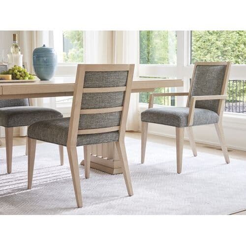 The Nicholas Upholstered Arm Chair embodies a fresh interpretation of relaxed resort living with its clean architectural lines and raised panel design that creates natural shadowing. This chair is crafted with attention to detail, offering a contemporary look that complements any modern interior. Its design highlights the beauty of the materials used, ensuring it stands out as a sophisticated addition to your living space.