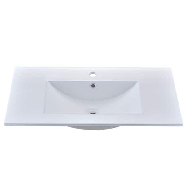 YASINU SQ 32 in. W x 18 in. D Ceramic Vanity Top Integrated Rectangle Basin Sink in White
