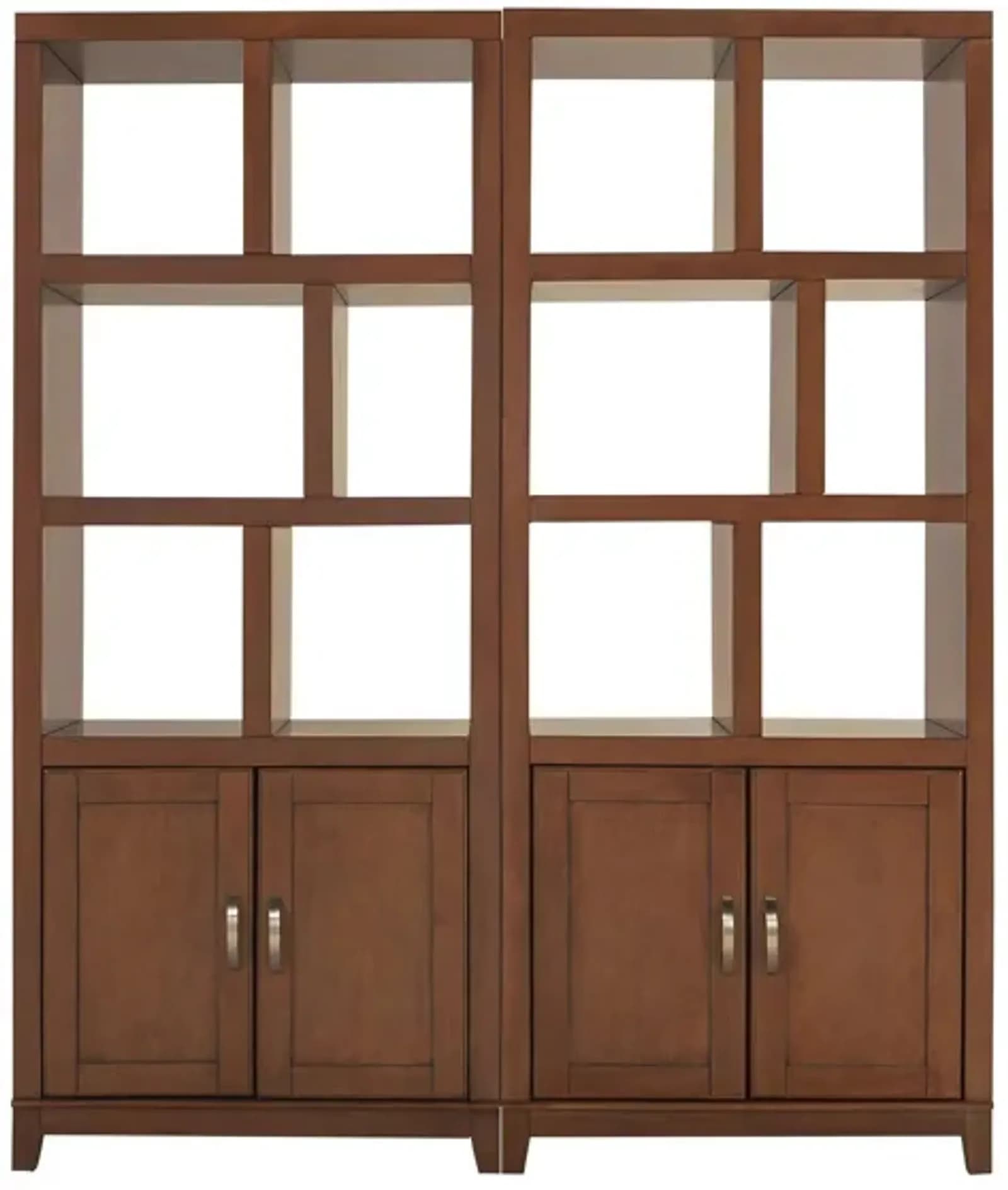Divide and conquer with the Granthom 2-pc. wall unit which includes two 6-compartment towers with doors. This modern take on open shelving is crafted of solid poplar with birch veneers. The see-through openings add to the visual transparency of this flexible wall unit. Each tower: 6 upper open compartments and 2 lower doors that enclose an adjustable, removable shelf. Kiln-dried poplar solid frame with birch veneers and reinforced frame joinery.