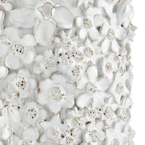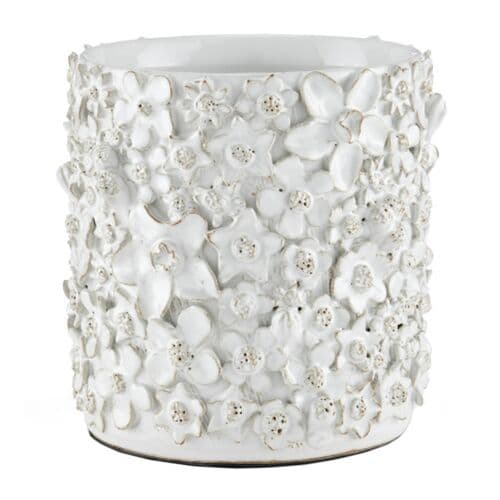 With a surface that is studded with beautifully fashioned flowers, this cachepot is truly an artisanal piece. Rather than apply one type of bloom, a number of floral shapes are intermingled to give the decorative accessory a charm. The handmade character of the piece comes from the fact that each flower is created individually and applied, one-by-one, by hand. This planter will be a plant's biggest complement.