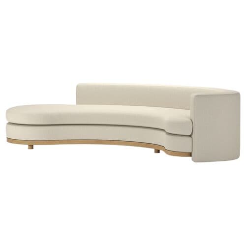 The ultimate croissant-shaped sofa with a twist, the Jenson sectional features a subtle channel back detail that complements the wooden plinth with bun feet. This is a signature piece for the Button Atelier collection, available in made-to-order fabrics.
