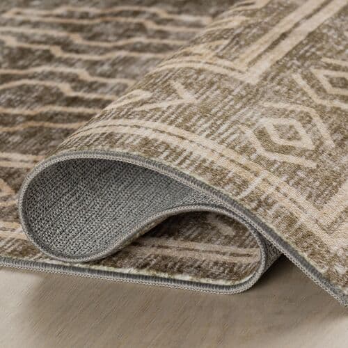 From Padma Lakshmi's exclusive collection, the Vale rug combines tradition and ease in a soft, low-maintenance format. Inspired by carved stonework and architectural motifs, this washable rug brings pattern and texture to your space without overwhelming it. Its muted palette and subtle symmetry make it an ideal choice for high-traffic areas like dining rooms, hallways, or family spaces.