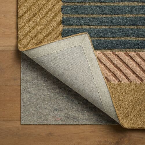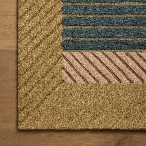 The Madi Collection is a colorful area rug by Brigette Romanek x Loloi featuring abstract designs in a rich palette of dusky blue, natural clay, earthy green, and muted gold. The varied, figurative designs are outlined with a raised wool pile for even more depth to sink into. Madi is hand-tufted in India and GoodWeave-certified, ensuring our commitment to ethical production and the support of weavers communities. Some shedding is expected and a natural characteristic of wool rugs; we recommend vacuuming frequently without a beater bar.