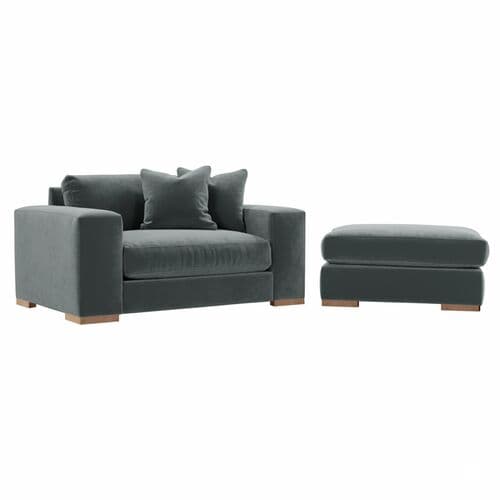 Remington Velvet Ottoman - Gray | Footstool, Footrest, Low Seat - Ideal Storage, Decor, Furniture