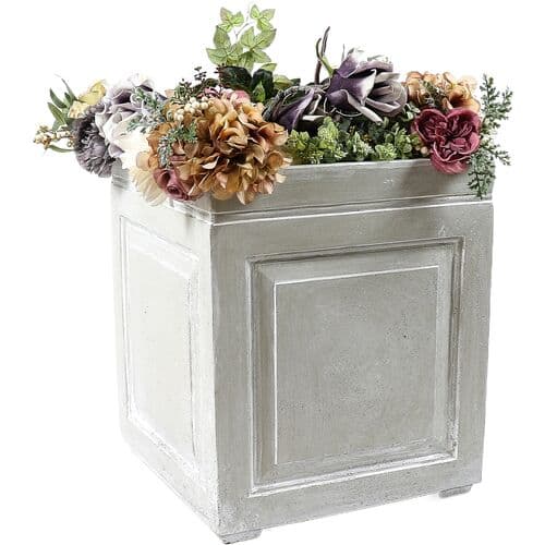 Crisp and architectural, this square planter features recessed panel detailing and a classic stone finish for a timeless look. Its clean-lined design makes it perfect for framing entryways, patios, or garden paths with vibrant greenery or sculpted topiary. A versatile piece that brings structure and elegance to outdoor spaces.