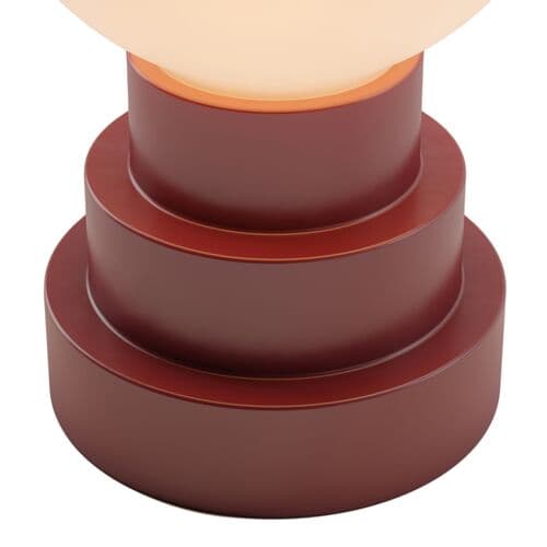 The Esme Globe Rechargeable Cordless LED Touch Sensor Table Lamp blends sculptural artistry with modern versatility. A luminous white glass orb rests atop a precision-crafted aluminum base, its softly stepped form adding playful dimension and balance. The opal glass diffuses light evenly, casting a warm, ambient glow that transforms any room with ease. Compact yet striking at fourteen and a half inches tall, Esme is fully cordless and rechargeable, offering the freedom to illuminate any space without limits. The touch sensor allows smooth control through three brightness levels, from a gentle 60 lumens to a bright 300 lumens, while the 2700K warm white glow and 90+ CRI ensure light that feels rich and true. Available in a curated palette of finishes including Oxblood, Iron, Moss, Avalon, and Citrone, Esme brings a touch of refined color and sculptural elegance to any interior.