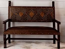 Hand tooling of leather is an ancient art performed by artisans who painstakingly chisel and carve the leather by hand. Each leather hide is selected for quality and the wood is seasoned and ages gracefully. This time honored tradition inspired these hand tooled western leather benches with a distinctive Spanish flair. Besides offering a unique design, this leather & wood furniture is created for durability and lasting quality.