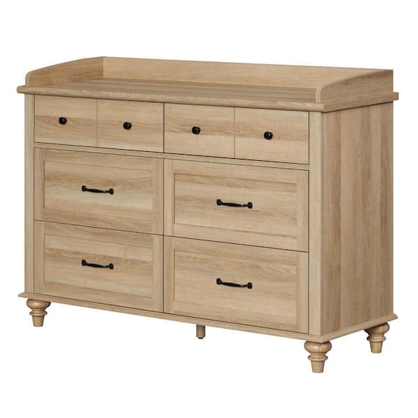 47 in. Baby Dresser for Nursery with 6 Drawers, Changing Table for Baby, Rustic Oak
