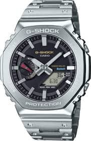 Full-metal G-SHOCK from the 2100 series with stainless steel case and bracelet, Tough Solar charging, Bluetooth smartphone connectivity, positive LCD with analog-digital display, 200m water resistance and shock resistant construction.