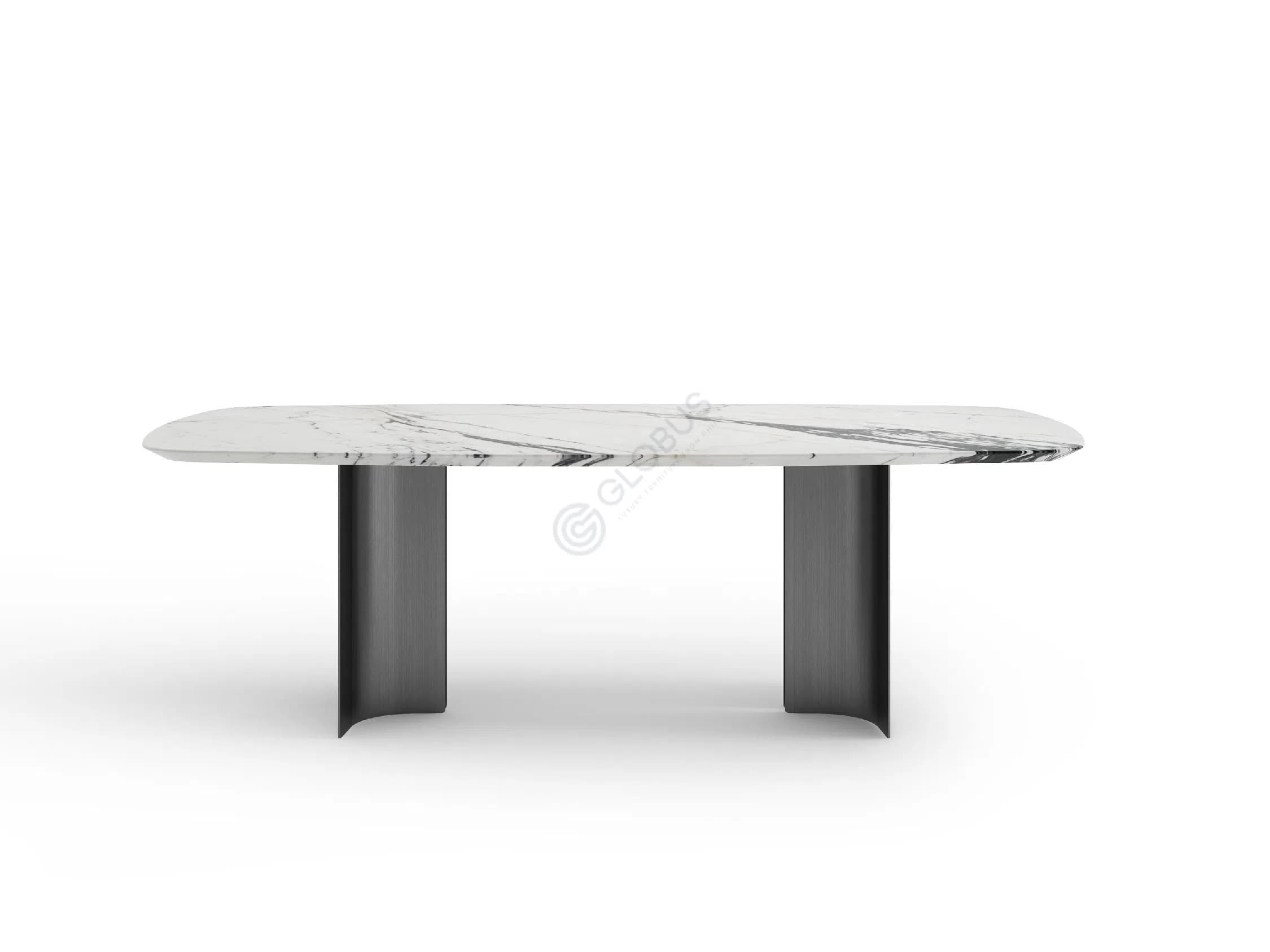 Introducing our exquisite dining table, a timeless piece where functionality meets sophistication. This elegantly designed table features a luxurious natural marble top, renowned for its durability and unique veining that guarantees each piece is one-of-a-kind. The sleek and sturdy stainless steel legs provide a contemporary contrast, ensuring stability without sacrificing style.