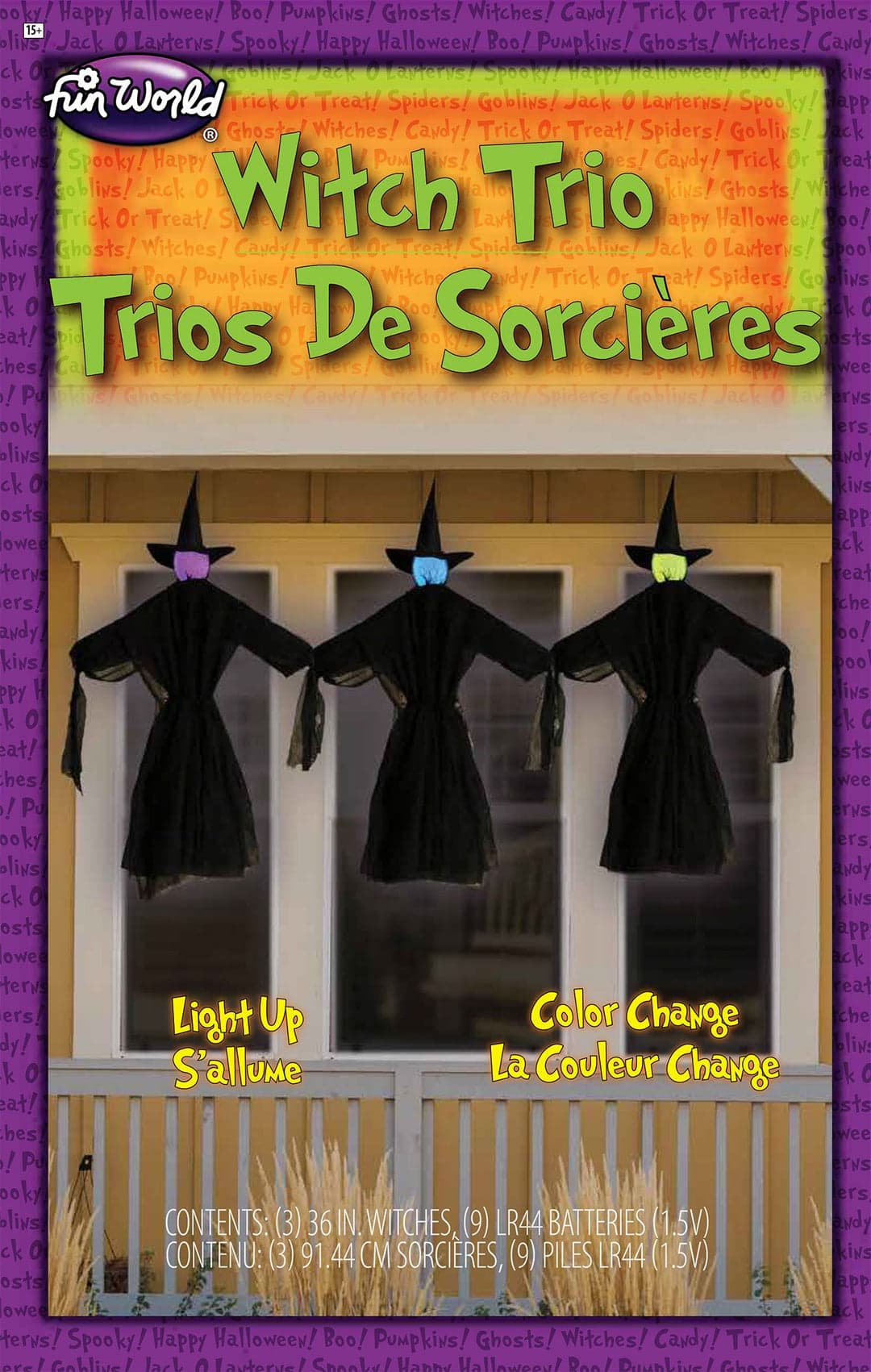 • 3 Witches in 1 Package • Color Change LED Head • Includes 9 x LR44 Batteries (3 pc. Each Witch)