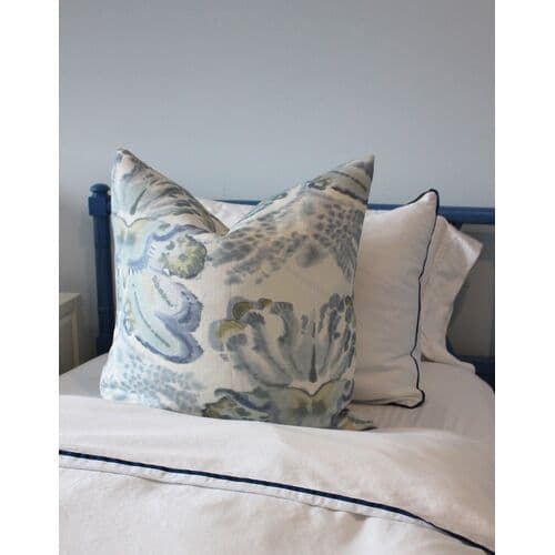 Veda 22x22 Abstract Print Linen Pillow - The Piper Collection | Cushion, Bolster - Blue