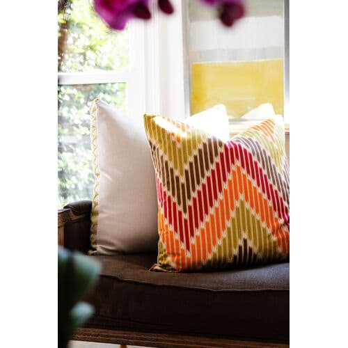 Introduce a vibrant touch to your home with the Naomi Pillow collection. These pillows feature a striking chevron pattern that combines bold colors with a solid sand-colored backer, effortlessly blending comfort with style. Perfect for transforming any living space, the Naomi Pillows offer a harmonious balance of complementary colors and geometric design, making them a standout addition to your decor.