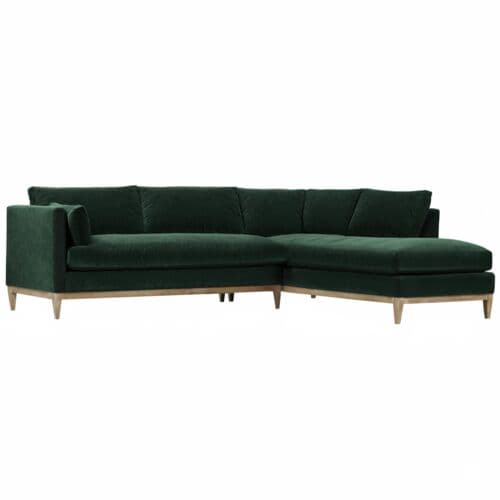 Elodie 107" Velvet Chaise Sectional - Green - Comfortable, Sturdy, Stylish | Divan, Sette