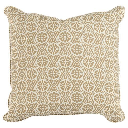 Lacey Block Print Cotton Pillow | Cushion, Bolster - Beige