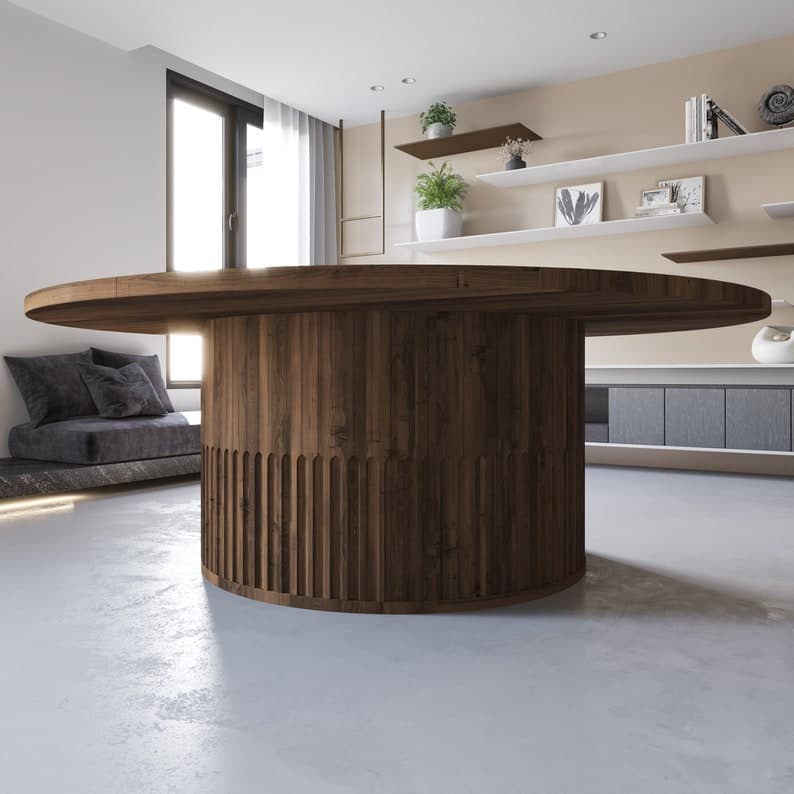 The Magnolia Hardwood Round Dining Table Fluted Cylinder Base