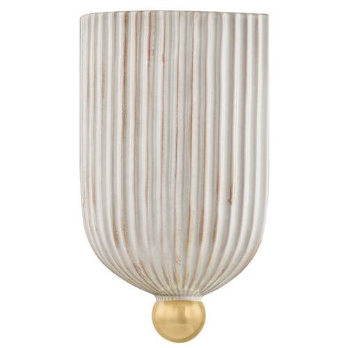 Lirra Ceramic Wall Sconce - Aged Brass/ Fluted Cream - White | Wall Fixtures, Wall Lamps - Decorative, Aesthetic