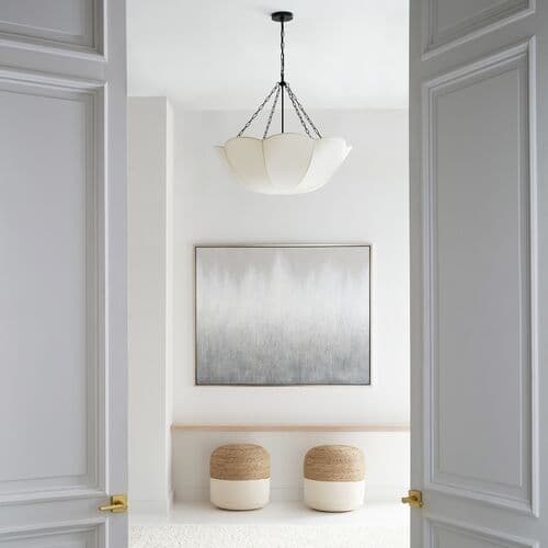 Reminiscent of a spring tulip, the Stassi series updates Art Nouveau inspiration with a modern aesthetic. The scalloped basket silhouette evokes the elegance of a blooming tulip, bringing organic beauty into your space. This chandelier, with its harmonious blend of design elements, creates a striking statement in any room, whether it be a living room, dining room, or bedroom. Its graceful form and thoughtful design make it a perfect addition to your home, enhancing the ambiance with its timeless charm.