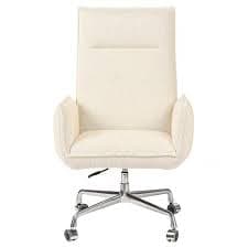 Executive office chair in cream performance upholstery with stainless-steel frame; modern-classic design suitable for home or office.