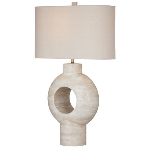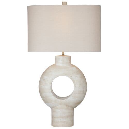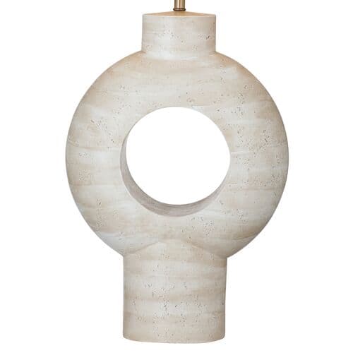 The Melissa Table Lamp features a modern design with an open center base that creates an airy, lightweight feel. Made of stone, the base adds natural texture and sophistication to any space. The rectangular linen shade with rounded corners softens the light, providing a warm and inviting glow. This stylish lamp brings a refined yet relaxed touch to a variety of interiors, blending seamlessly with both contemporary and traditional decor.