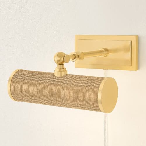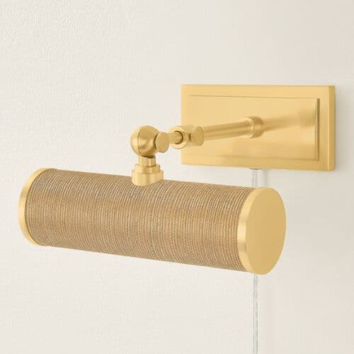 Kova Steel Picture Light - Aged Brass/Grasscloth - Gold | Art Light, Wall Light, Frame Light - Small