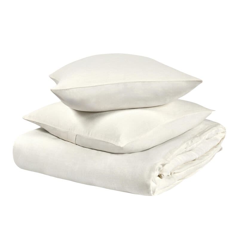 Paula 3 Piece Queen Duvet Set, Ivory Extra Soft Stone Washed Hemp