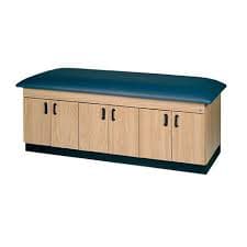 Hausmann Extra Wide Bariatric Treatment Table is designed with three storage cabinets, each with laminate interiors and one adjustable shelf. The table consists of doors that are concealed, self-closing, and euro-hinges and has reinforced oak laminated wood construction. Estimated Shipping Time: 6 to 8 Weeks. Features include a 3" extra thick high density urethane foam top for bariatric use, an extra wide 34" x 78" long upholstered top, and a weight capacity of 800 lb.