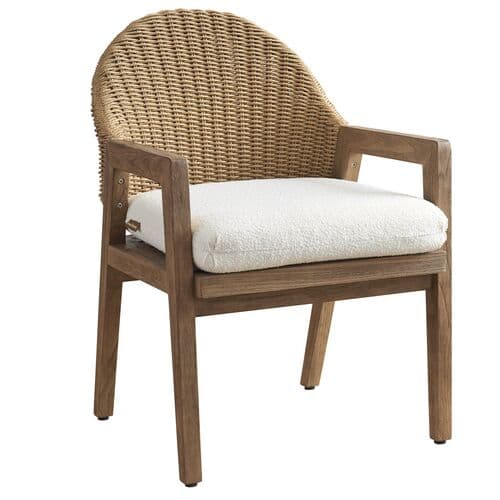 Isle Of Palms Outdoor Wicker/Teak Arm Dining Chair - Textured White/Ivory - Tommy Bahama | Accent Chair, Arm chair
