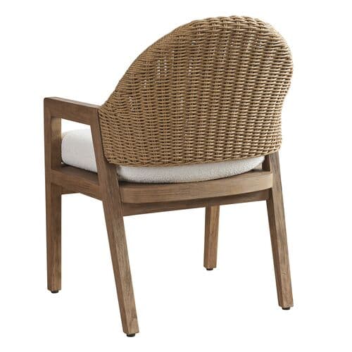 The Isle Of Palms Arm Dining Chair embodies a harmonious blend of transitional lines and Mid-Century styling. This chair showcases a sophisticated design with its sustainably sourced teak and woven elements. The woven frames add a textural dimension, grounding the design with an organic sensibility. The natural teak is treated with a protective sealer to preserve its color, ensuring durability and elegance in outdoor settings. This piece is a testament to a fresh and modern approach to refined outdoor living, combining clean lines and diverse materials.